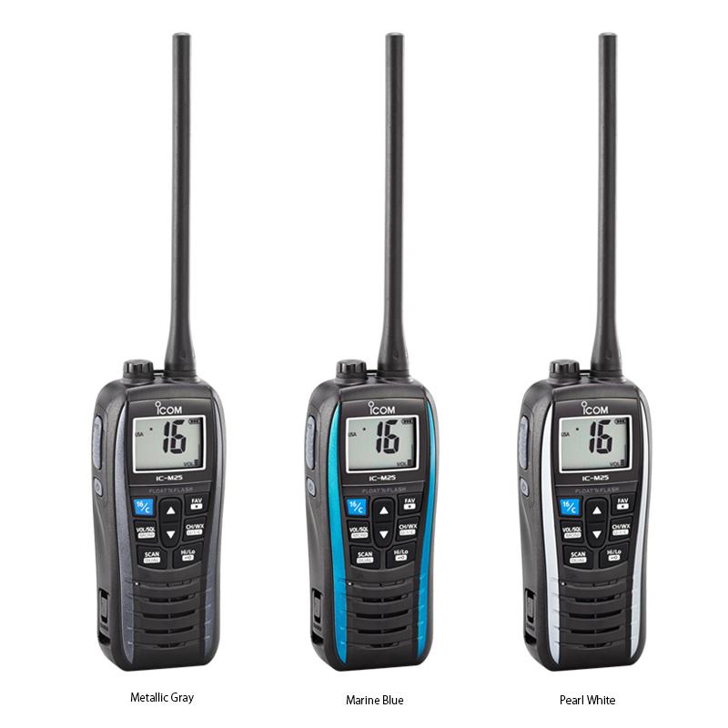 IC-M25在水中可漂浮,并且红色LED灯会发出光亮,让你准确知道它的位置。IC-M25还增加了IC-M23没有的功能:在水中可自动发出报警音。
